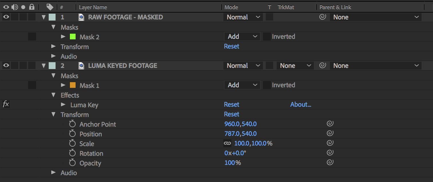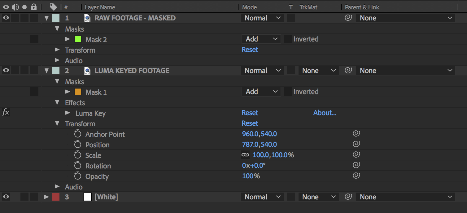 If the luma key process starts keying out your subject’s skin then you’ll need to apply another mask. Duplicate the footage layer and remove all of the effects on the new layer. Add a mask to the area you don’t want keyed out and set it to ‘add’ to ensure any white isn’t removed from the face. Hopefully your subject won’t be moving too much, so the mask should require very minimal keyframing (if any).